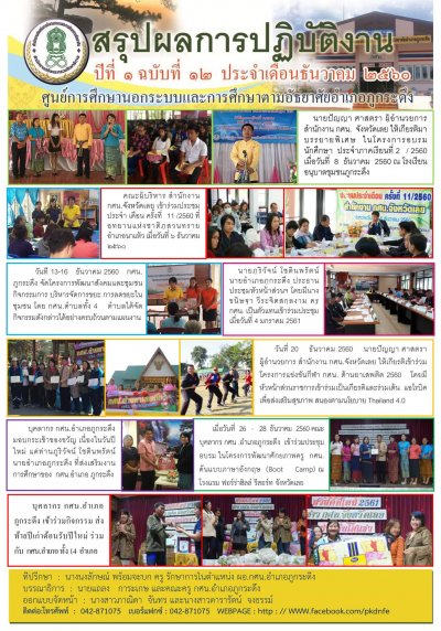 สรุปผลการดำเนินงาน กศน.อำเภอภูกระดึง ธันวาคม.2560