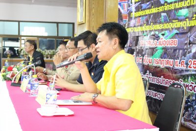ทั้งนี้ได้รับการสนับสนุนวิทยากร จาก หัวหน้าส่วนราชการ หน่วยงานและภาคีเครือข่าย อาทิ พ.อ.สมหมาย บุษบา เสนาธิการมณ ฑลทหารบกที่ ๒๘ นายประมวล ลาภจิตต์ หัวหน้าสำนักงาน ปภ.จังหวัดเลย นายชาญชัย แสงสวัสดิ์ ป้องกันจังหวัดเลย พ.ต.ท.มานิตย์ แก้วเจริญ สว.จราจร สภ.เมืองเลย นายวุฒิกร เกษแก้ว ผู้ชำนาญงาน สำนักงาน คปภ.สาขาเลย และนายสุพัฒน์ สุวรรณสิงห์ ผอ.กศน. อ.เมืองเลย ซึ่งดำเนินการเสวนาโดย นายทนง สุวรรณสิงห์ ประธานชมรมรักในหลวงจังหวัดเลย