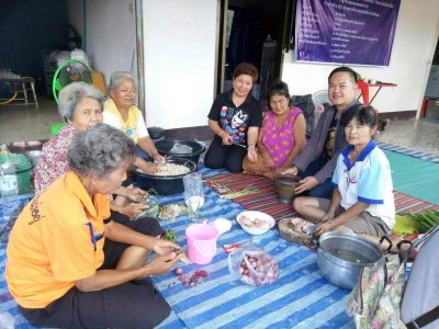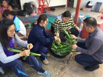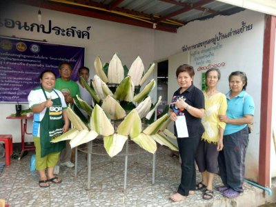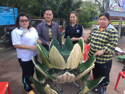 โดยร่วมกิจกรรมการแลกเปลี่ยนเรียนรู้การประกอบกระทงสำหรับขบวนแห่ของชุมชน