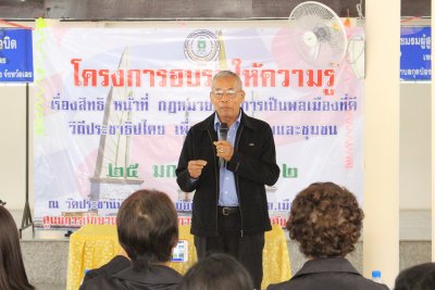 เมื่อวันที่ ๒๕ มกราคม ๒๕๖๒ นายสุพัฒน์ สุวรรณสิงห์ ผอ.กศน.อำเภอเมืองเลย เป็นประธานกล่าวเปิดการจัดโครงการอบรมให้ความรู้ เรื่องสิทธิ หน้าที่ กฏหมาย กับการเป็นพลเมืองที่ดี วิถีประชาธิปไตย เพื่อพัฒนาสังคมและชุมชน ณ วัดประชานิมิต ชุมชนภูบ่อบิด อ.เมืองเลย จ.เลย ซึ่งนายมีนายนิพนธ์ แก้วสุฟอง ครูอาสาฯ เป็นผู้กล่าวรายงานการจัดโครงการ พร้อมนำคณะบุคลากร กศน.อำเภอเมืองเลย และผู้นำชุมชนในเขตพื้นที่ตำบลกุดป่อง อำเภอเมืองเลย จังหวัดเลย เข้าร่วมรับฟังบรรยายจากท่าน ผศ.ไชยวุฒิ มนตรีรักษ์ ผู้ทรงคุณวุฒิจากมหาวิทยาลัยราชภัฏเลย เป็นวิทยากร อบรมให้ความรู้เรื่องสิทธิ หน้าที่ กฏหมาย กับการเป็นพลเมืองที่ดี วิถีประชาธิปไตย