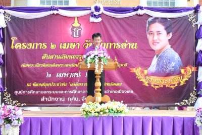 เมื่อวันที่ ๒ เมษายน ๒๕๖๒ นายสุพัฒน์ สุวรรณสิงห์ ผอ.กศน.อำเภอเมืองเลย เป็นประธานกล่าวเปิดงานโครงการ ๒ เมษา วันรักการอ่าน ประจำปี ๒๕๖๒ ณ ห้องสมุดประชาชนเฉลิมราชกุมารีจังหวัดเลย, บ้านกำเนิดเพชร ต.เมือง อ.เมืองเลย จ.เลย