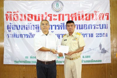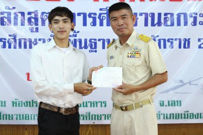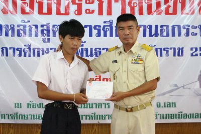 กศน.อ.เมืองเลย มอบประกาศนียบัตรผู้จบหลักสูตรการศึกษานอกระบบระดับการศึกษาขั้นพื้นฐานพุทธศักราช ๒๕๕๑ ประจำปีการศึกษา ๒๕๖๑