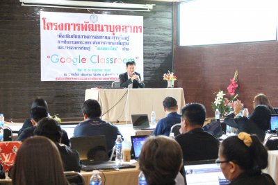 เมื่อวันที่ ๑๔ มิถุนายน ๒๕๖๒ นายสุพัฒน์ สุวรรณสิงห์ ผอ.กศน.อำเภอเมืองเลย เป็นประธานกล่าวเปิดโครงการพัฒนาบุคลากร เพื่อเพิ่มศักยภาพการจัดทำแผนการเรียนรู้ การศึกษานอกระบบระดับการศึกษาขั้นพื้นฐานและการจัดการเรียนรู้แบบออนไลน์ด้วย Google Classroom ระหว่างวันที่ ๑๓ - ๑๔ มิถุนายน ๒๕๖๒ ณ ริเวอร์ไซด์ เชียงคาน รีสอร์ท อำเภอเชียงคาน จังหวัดเลย