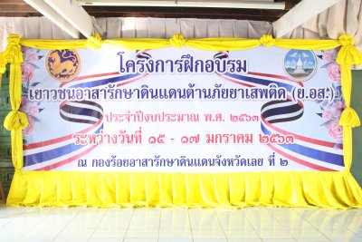 เมื่อวันที่ ๑๕ มกราคม ๒๕๖๓ นายปัญญา วงศ์ศรีแก้ว รองผู้ว่าราชการจังหวัดเลย เป็นประธานพิธีเปิดโครงการฝึกอบรมเยาวชนอาสารักษาดินแดนต้านภัยยาเสพติด (ย.อส.) ประจำปีงบประมาณ ๒๕๖๓ โดยมีนายณรงค์ จีนอ่ำ ปลัดจังหวัดเลย รวมทั้งหัวหน้าส่วนราชการ และหน่วยงานที่เกี่ยวข้องเข้าร่วม ณ กองร้อยอาสารักษาดินแดนจังหวัดเลย ที่ ๒ อำเภอเมืองเลย จังหวัดเลย โดยนายสุขสันต์ ไชยรถ ป้องกันจังหวัดเลย กล่าวว่า การจัดโครงการในครั้งนี้มีวัตถุประสงค์เพื่อลดเยาวชนกลุ่มเสี่ยงในหมู่บ้าน/ชุมชน ปรับเปลี่ยนพฤติกรรมและเสริมสร้างภูมิคุ้มกันยาเสพติดและสร้างเยาวชนเป็นแนวร่วมช่วยเหลือเจ้าหน้าที่ฝ่ายปกครอง ตำรวจ รวมทั้งเฝ้าระวังปัญหายาเสพติดในพื้นที่และบำเพ็ญประโยชน์โดยส่วนรวมในอนาคตต่อไป โดยนายนิพนธ์ แก้วสุฟอง ครู อาสาฯ กศน.อำเภอเมืองเลย ได้นำคณะนักศึกษา กศน.อำเภอเมืองเลย เข้าร่วมโครงการฝึกอบรมเยาวชนอาสารักษาดินแดนต้านภัยยาเสพติด (ย.อส.) ประจำปีงบประมาณ ๒๕๖๓ ระหว่างวันที่ ๑๕-๑๗ มกราคม ๒๕๖๓ ณ กองร้อยอาสารักษาดินแดนจังหวัดเลย ที่ ๒ อำเภอเมืองเลย จังหวัดเลย