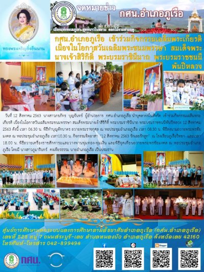 เวลา10.30 น. กิจกรรมจิตอาสา "12 สิงหาคม 2563 รักเอยรักลูก" ณ โรงเรียนภูเรือวิทยา และเวลา 18.00 น.