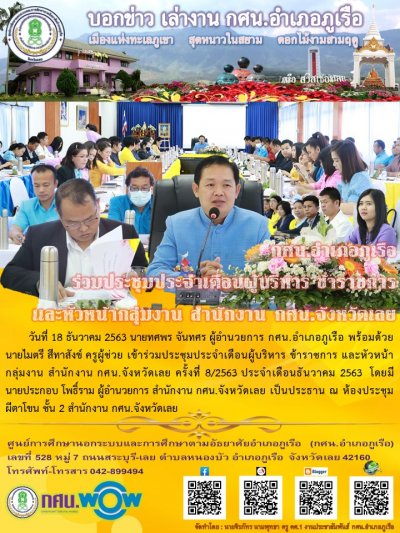 กศน.อำเภอภูเรือ ร่วมประชุมประจำเดือนผู้บริหาร ข้าราชการ และหัวหน้ากลุ่มงาน สำนักงาน กศน.จังหวัดเลย
