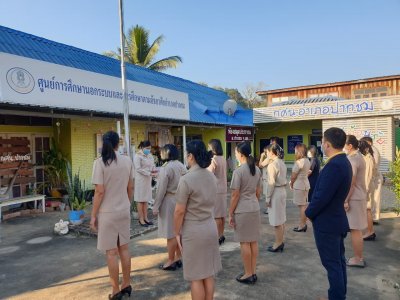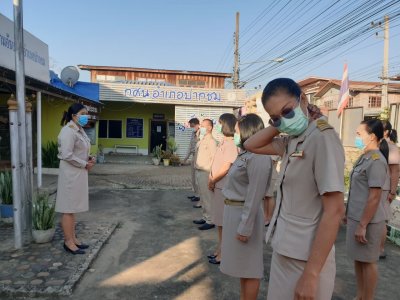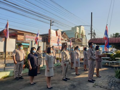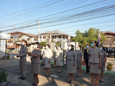 กศน.อำเภอปากชมเข้าแถวเคารพธงชาติเพื่อเป็นการแสดงออกถึงความจงรักภักดีต่อชาติศาสน์กษัตริย์ความตรงต่อเวลามีระเบียบ วินัย