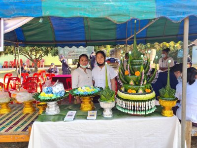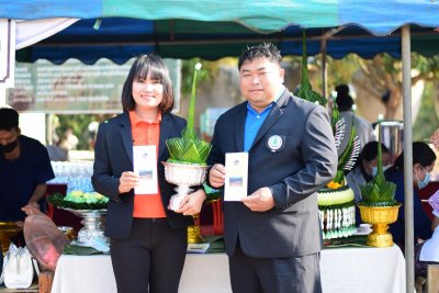 ต้อนรับคณะกรรมการ โดยกศน.ตำบลห้วยพิชัยได้นำชิ้นงานพานบายศรี