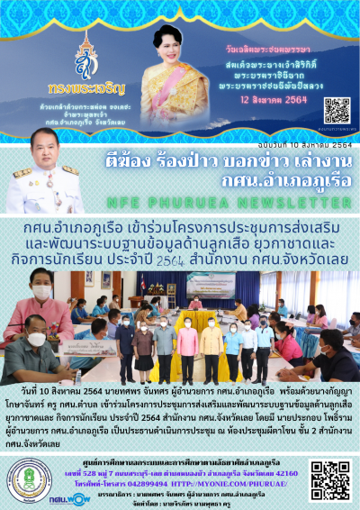 วันที่ 10 สิงหาคม 2564 นายทศพร จันทศร ผู้อำนวยการ กศน.อำเภอภูเรือ