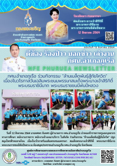 กศน.อำเภอภูเรือ ร่วมกิจกรรม "ล้านเมล็ดพันธุ์สู้ภัยโควิด" เนื่องในวโรกาสวันเฉลิมพระชนมพรรษาสมเด็จพระนางเจ้าสิริกิติ์ พระบรมราชินีนาถ พระบรมราชชนนีพันปีหลวง
