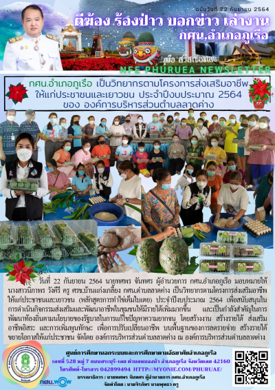 วันที่ 22 กันยายน 2564 นายทศพร จันทศร ผู้อำนวยการ กศน.อำเภอภูเรือ มอบหมายให้ นางสาวนิภาพร วังคีรี ครู ศรช.บ้านแก่งเกลี้ยง กศน.ตำบลลาดค่าง เป็นวิทยากรตามโครงการส่งเสริมอาชีพให้แก่ประชาชนและเยาวชน (หลักสูตรการทำไข่เค็มใบเตย) ประจำปีงบประมาณ 2564 เพื่อสนับสนุนในการดำเนินกิจกรรมส่งเสริมและพัฒนาอาชีพในชุมชนให้มีรายได้เพิ่มมากขึ้น และเป็นกำลังสำคัญในการพัฒนาท้องถิ่นตามนโยบายของรัฐบาลในการแก้ไขปัญหาความยากจน โดยสร้างงาน สร้างรายได้ ส่งเสริมอาชีพอิสระ และการเพิ่มพูนทักษะ เพื่อการปรับเปลียนอาชีพ บนพื้นฐานของการลดรายจ่าย สร้างรายได้ ขยายโอกาสให้แก่ประชาชน จัดโดย องค์การบริหารส่วนตำบลลาดค่าง ณ องค์การบริหารส่วนตำบลลาดค่าง