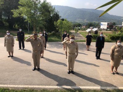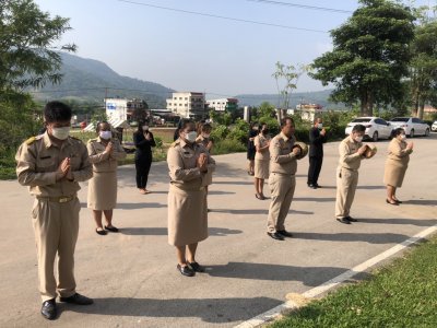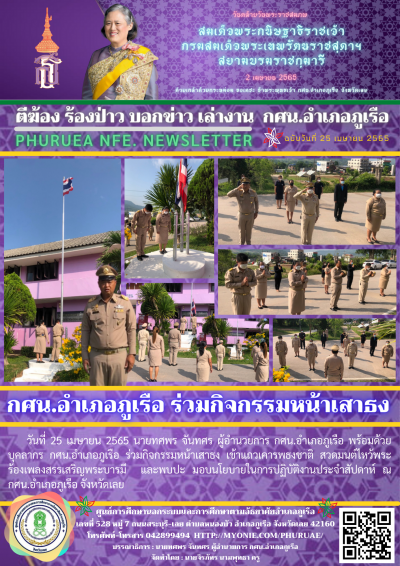 วันที่ 25 เมษายน 2565 นายทศพร จันทศร ผู้อำนวยการ กศน.อำเภอภูเรือ พร้อมด้วยบุคลากร กศน.อำเภอภูเรือ ร่วมกิจกรรมหน้าเสาธง เข้าแถวเคารพธงชาติ สวดมนต์ไหว้พระ