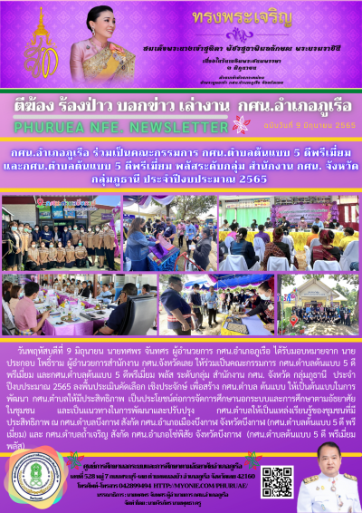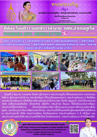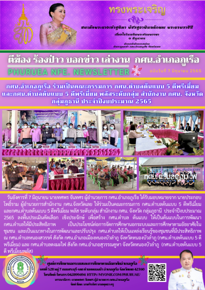 กศน.อำเภอภูเรือ ร่วมเป็นคณะกรรมการ กศน.ตำบลต้นแบบ 5 ดีพรีเมี่ยม และกศน.ตำบลต้นแบบ 5 ดีพรีเมี่ยม พลัสระดับกลุ่ม สำนักงาน กศน. จังหวัด กลุ่มภูธานี ประจำปีงบประมาณ 2565