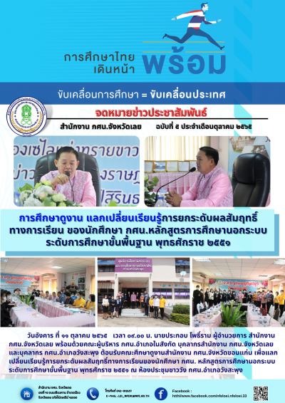 การศึกษาดูงาน แลกเปลี่ยนเรียนรู้การยกระดับผลสัมฤทธิ์ ทางการเรียน ของนักศึกษา กศน.หลักสูตรการศึกษานอกระบบระดับการศึกษาขั้นพื้นฐาน พุทธศักราช ๒๕๕๑