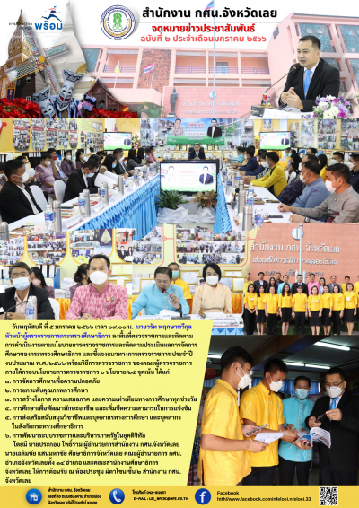 โดยมี นายประกอบ โพธิ์ราม ผู้อำนวยการสำนักงาน กศน.จังหวัดเลย นายเฉลิมชัย แสนมหาชัย ศึกษาธิการจังหวัดเลย คณะผู้อำนวยการ กศน. อำเภอจังหวัดเลยทั้ง ๑๔ อำเภอ และคณะสำนักงานศึกษาธิการ จังหวัดเลย ให้การต้อนรับ ณ ห้องประชุม ผีตาโขน ชั้น ๒ สำนักงาน กศน.จังหวัดเลย