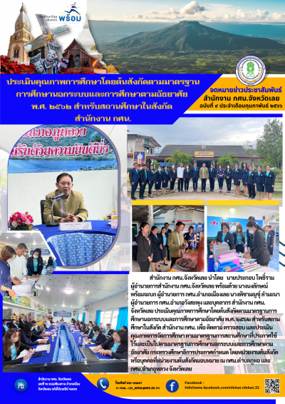 สำนักงาน กศน.จังหวัดเลย นำโดย นายประกอบ โพธิ์ราม ผู้อำนวยการสำนักงาน กศน.จังหวัดเลย พร้อมด้วย นางนงลักษณ์ พร้อมจะบก ผู้อำนวยการ กศน.อำเภอเมืองเลย นางพิชามญชุ์ ลำมะนา ผู้อำนวยการ กศน.อำเภอวังสะพุง และบุคลากร สำนักงาน กศน. จังหวัดเลย ประเมินคุณภาพการศึกษาโดยต้นสังกัดตามมาตรฐานการศึกษานอกระบบและการศึกษาตามอัธยาศัย พ.ศ. ๒๕๖๒ สำหรับสถานศึกษาในสังกัด สำนักงาน กศน. เพื่อ ติดตาม ตรวจสอบ และประเมินคุณภาพการจัดการศึกษา ตามมาตรฐานการสถานศึกษาที่ประกาศใช้ไว้และเป็นไปตามมาตรฐานการศึกษานอกระบบและการศึกษาตามอัธยาศัย กระทรวงศึกษาธิการประกาศกำหนด โดยหน่วยงานต้นสังกัดหรือบุคคลที่หน่วยงานต้นสังกัดมอบหมาย ณ กศน.ตำบลภูหอ และ กศน.อำเภอูหลวง จังหวัดเลย