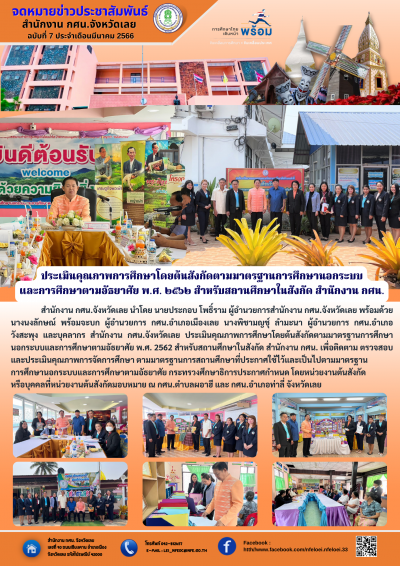 สำนักงาน กศน.จังหวัดเลย นำโดย นายประกอบ โพธิ์ราม ผู้อำนวยการสำนักงาน กศน.จังหวัดเลย พร้อมด้วย นางนงลักษณ์ พร้อมจะบก ผู้อำนวยการ กศน.อำเภอเมืองเลย นางพิชามญชุ์ ลำมะนา ผู้อำนวยการ กศน.อำเภอวังสะพุง และบุคลากร สำนักงาน กศน.จังหวัดเลย ประเมินคุณภาพการศึกษาโดยต้นสังกัดตามมาตรฐานการศึกษานอกระบบและการศึกษาตามอัธยาศัย พ.ศ. 2562 สำหรับสถานศึกษาในสังกัด สำนักงาน กศน. เพื่อติดตาม ตรวจสอบ และประเมินคุณภาพการจัดการศึกษา ตามมาตรฐานการสถานศึกษาที่ประกาศใช้ไว้และเป็นไปตามมาตรฐาน การศึกษานอกระบบและการศึกษาตามอัธยาศัย กระทรวงศึกษาธิการประกาศกำหนด โดยหน่วยงานต้นสังกัด หรือบุคคลที่หน่วยงานต้นสังกัดมอบหมาย ณ กศน.ตำบลผอาฮี และ กศน.อำเภอท่าลี่ จังหวัดเลย