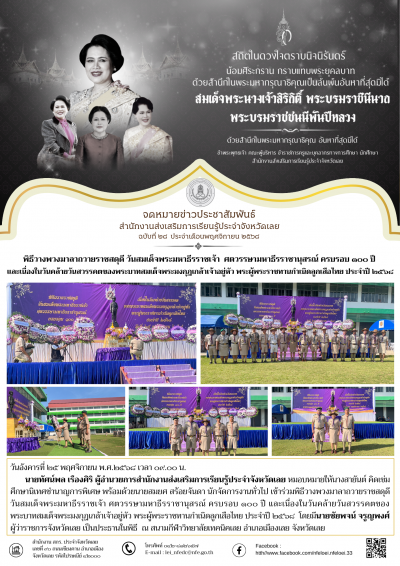 วันอังคารที่ ๒๕ พฤศจิกายน พ.ศ.๒๕๖๘ เวลา ๐๙.๐๐ น. นายทัศน์พล เรืองศิริ ผู้อำนวยการสำนักงานส่งเสริมการเรียนรู้ประจำจังหวัดเลย หมอบหมายให้นางสายันต์ คิดเข่ม ศึกษานิเทศชำนาญการพิเศษ พร้อมด้วยนายสมยศ สร้อยจันดา นักจัดการงานทั่วไป เข้าร่วมพิธีวางพวงมาลาถวายราชสดุดี วันสมเด็จพระมหาธีรราชเจ้า ศตวรรษามหาธีรราชานุสรณ์ ครบรอบ ๑๐๐ ปี และเนื่องในวันคล้ายวันสวรรคตของพระบาทสมเด็จพระมงกุฎเกล้าเจ้าอยู่หัว พระผู้พระราชทานกำเนิดลูกเสือไทย ประจำปี ๒๕๖๘ โดยมีนายชัยพจน์ จรูญพงศ์ ผู้ว่าราชการจังหวัดเลย เป็นประธานในพิธี ณ สนามกีฬาวิทยาลัยเทคนิคเลย อำเภอเมืองเลย จังหวัดเลย