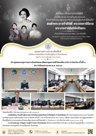 วันพฤหัสบดีที่ ๔ ธันวาคม พ.ศ.๒๕๖๘ เวลา ๐๙.๓๐ น. นายทัศน์พล เรืองศิริ ผู้อำนวยการสำนักงานส่งเสริมการเรียนรู้ประจำจังหวัดเลย เข้าร่วมประชุมคณะอนุกรรมการส่งเสริมและพัฒนาคุณภาพชีวิตคนพิการประจำจังหวัด ครั้งที่ ๑ ประจำปีงบประมาณ พ.ศ. ๒๕๖๙ เพื่อพิจารณาคนพิการและผู้ดูแลคนพิการที่ขอกู้ยืมเงินจากกองทุนส่งเสริมและพัฒนาคุณภาพชีวิตคนพิการ จำนวน ๒๘ ราย เป็นจำนวนเงิน ๑,๓๐๐,๐๐๐ บาท