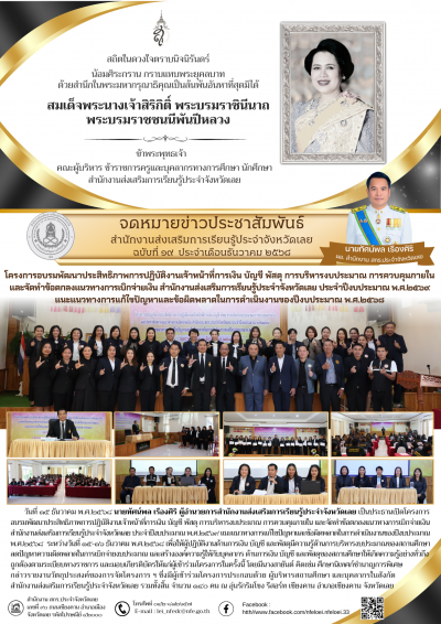 วันที่ ๑๕ ธันวาคม พ.ศ.๒๕๖๘ นายทัศน์พล เรืองศิริ ผู้อำนวยการสำนักงานส่งเสริมการเรียนรู้ประจำจังหวัดเลย เป็นประธานเปิดโครงการอบรมพัฒนาประสิทธิภาพการปฏิบัติงานเจ้าหน้าที่การเงิน บัญชี พัสดุ การบริหารงบประมาณ การควบคุมภายใน และจัดทำข้อตกลงแนวทางการเบิกจ่ายเงินสำนักงานส่งเสริมการเรียนรู้ประจำจังหวัดเลย ประจำปีงบประมาณ พ.ศ.๒๕๖๙ แนะแนวทางการแก้ไขปัญหาและข้อผิดพลาดในการดำเนินงานของปีงบประมาณ พ.ศ.๒๕๖๘ ระหว่างวันที่ ๑๕-๑๖ ธันวาคม พ.ศ.๒๕๖๘ เพื่อให้ผู้ปฏิบัติงานด้านการเงิน บัญชี และพัสดุมีความรู้ด้านการบริหารงบประมาณของสถานศึกษา ลดปัญหาความผิดพลาดในการเบิกจ่ายงบประมาณ และสร้างองค์ความรู้ให้กับบุคลากร ด้านการเงิน บัญชี และพัสดุของสถานศึกษาให้เกิดความรู้อย่างทั่วถึง ถูกต้องตามระเบียบทางราชการ และมอบเกียรติบัตรให้แก่ผู้เข้าร่วมโครงการในครั้งนี้ โดยมีนางสายันต์ คิดเข่ม ศึกษานิเทศก์ชำนาญการพิเศษ กล่าวรายงานวัตถุประสงค์ของการจัดโครงการ ฯ ซึ่งมีผู้เข้าร่วมโครงการประกอบด้วย ผู้บริหารสถานศึกษา และบุคลากรในสังกัดสำนักงานส่งเสริมการเรียนรู้ประจำจังหวัดเลย รวมทั้งสิ้น จำนวน ๑๔๐ คน ณ อุ่นรักริมโขง รีสอร์ท เชียงคาน อำเภอเชียงคาน จังหวัดเลย