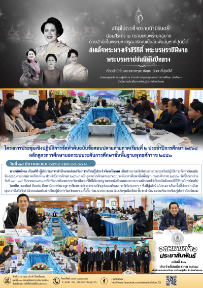 วันที่ ๑๘ ธันวาคม พ.ศ.๒๕๖๘ เวลา ๐๙.๐๐ น. นายทัศน์พล เรืองศิริ ผู้อำนวยการสำนักงานส่งเสริมการเรียนรู้ประจำจังหวัดเลย เป็นประธานเปิดโครงการประชุมเชิงปฏิบัติการจัดทำต้นฉบับข้อสอบปลายภายภาคเรียนที่ ๒ ประจำปีการศึกษา ๒๕๖๘ หลักสูตรการศึกษานอกระบบระดับการศึกษาขั้นพื้นฐาน พุทธศักราช ๒๕๕๑ จัดขึ้นระหว่างวันที่ ๑๘ - ๑๙ ธันวาคม ๒๕๖๘ เพื่อพัฒนาข้อสอบรายวิชาเลือกเสรีให้ได้มาตรฐานตามผังข้อสอบและรวบรวมข้อสอบไว้เป็นคลังข้อสอบไว้ใช้ประโยชน์ต่อไป