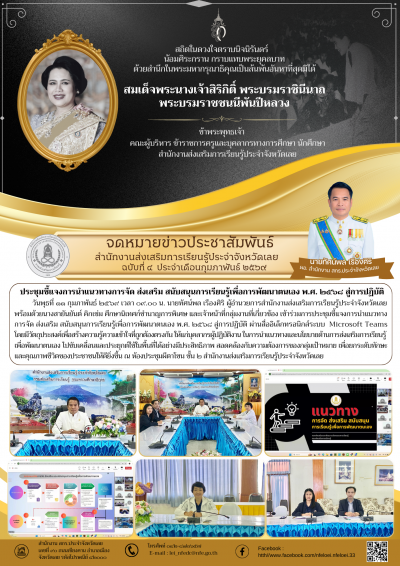 พร้อมด้วยนางสายันยันต์ คิกเข่ม ศึกษานิเทศก์ชำนาญการพิเศษ และเจ้าหน้าที่กลุ่มงานที่เกี่ยวข้อง เข้าร่วมการประชุมชี้แจงการนำแนวทางการจัด ส่งเสริม สนับสนุนการเรียนรู้เพื่อการพัฒนาตนเอง พ.ศ. ๒๕๖๘ สู่การปฏิบัติ ผ่านสื่ออิเล็กทรอนิกส์ระบบ Microsoft Teams โดยมีวัตถุประสงค์เพื่อสร้างความรู้ความเข้าใจที่ถูกต้องตรงกัน ให้แก่บุคลากรผู้ปฏิบัติงาน ในการนำแนวทางและนโยบายด้านการส่งเสริมการเรียนรู้เพื่อพัฒนาตนเอง ไปขับเคลื่อนและประยุกต์ใช้ในพื้นที่ได้อย่างมีประสิทธิภาพ สอดคล้องกับความต้องการของกลุ่มเป้าหมาย เพื่อยกระดับทักษะและคุณภาพชีวิตของประชาชนให้ดียิ่งขึ้น ณ ห้องประชุมผีตาโขน ชั้น ๒ สำนักงานส่งเสริมการเรียนรู้ประจำจังหวัดเลย