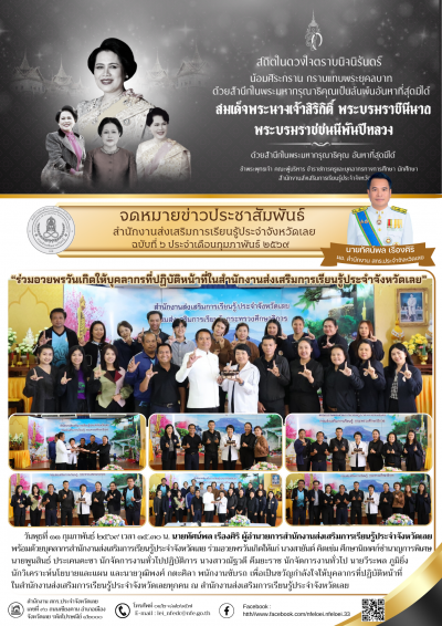 วันพุธที่ ๑๑ กุมภาพันธ์ ๒๕๖๙ เวลา ๑๕.๓๐ น. นายทัศน์พล เรืองศิริ ผู้อำนวยการสำนักงานส่งเสริมการเรียนรู้ประจำจังหวัดเลย พร้อมด้วยบุคลากรสำนักงานส่งเสริมการเรียนรู้ประจำจังหวัดเลย ร่วมอวยพรวันเกิดให้แก่ นางสายันต์ คิดเข่ม ศึกษานิเทศก์ชำนาญการพิเศษ นายพูนสินธ์ ประเคนคะชา นักจัดการงานทั่วไปปฏิบัติการ นางสาวณัฐวดี คึมยะราช นักวิชาการศึกษา นายวีระพล ภูมิยิ่ง นักวิเคราะห์นโยบายและแผน และนายวุฒิพงศ์ กตะศิลา พนักงานขับรถยนต์ เพื่อเป็นขวัญกำลังใจให้บุคลากรที่ปฏิบัติหน้าที่ในสำนักงานส่งเสริมการเรียนรู้ประจำจังหวัดเลยทุกคน ณ สำนักงานส่งเสริมการเรียนรู้ประจำจังหวัดเลย