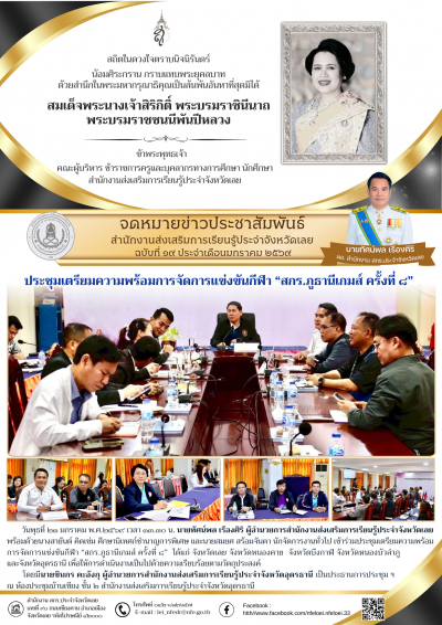 การประชุมเพื่อวางแผน การจัดโครงการฝึกอบรมพัฒนาบุคลากร เพื่อยกระดับคุณภาพการปฏิบัติงาน สกร.ประจำจังหวัดเลย และจัดทำบันทึกข้อตกลงการดำเนินงานการจัดการศึกษาขั้นพื้นฐาน ภาคเรียนที่ ๒ ประจำปีการศึกษา ๒๕๖๘