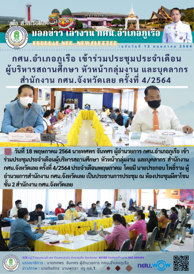 กศน.อำเภอภูเรือ เข้าร่วมประชุมประจำเดือน ผู้บริหารสถานศึกษา หัวหน้ากลุ่มงาน และบุคลากร สำนักงาน กศน.จังหวัดเลย ครั้งที่ 4/2564