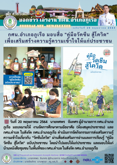 กศน.อำเภอภูเรือ มอบสื่อ "คู่มือวัคซีน สู้โควิด" เพื่อเสริมสร้างความรู้ความเข้าใจให้แก่ประชาชน