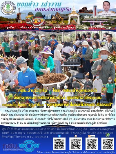 กศน.อำเภอภูเรือ โดย กศน.ตำบลหนองบัว จัดกิจกรรมการศึกษาต่อเนื่อง ศูนย์ฝึกอาชีพชุมชนกลุ่มสนใจ ไม่เกิน 30 ชั่วโมง “หลักสูตรการทำไม้ดอกไม้ประดับ สับปะรดสี”