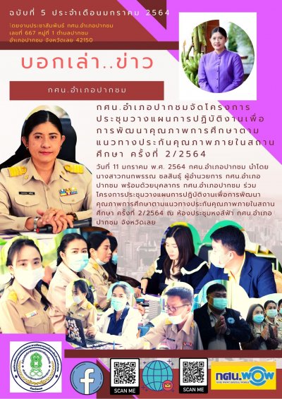 กศน.อำเภอปากชมจัดโครงการประชุมวางแผนการปฏิบัติงานเพื่อการพัฒนาคุณภาพการศึกษาตามแนวทางประกันคุณภาพภายในสถานศึกษา ครั้งที่ 2/2564