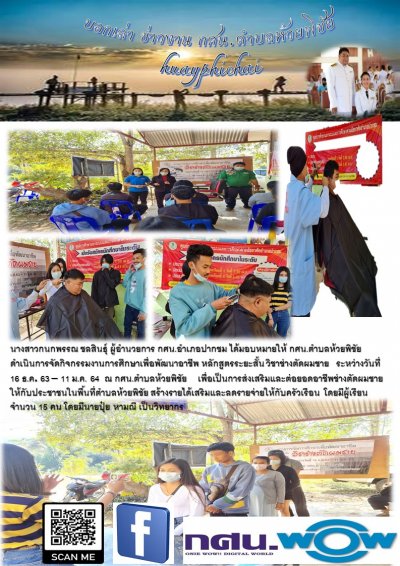 กศน.ตำบลห้วยพิชัย ดำเนินการจัดกิจกรรมงานการศึกษาเพื่อพัฒนาอาชีพ หลักสูตรระยะสั้น วิชาช่างตัดผมชาย