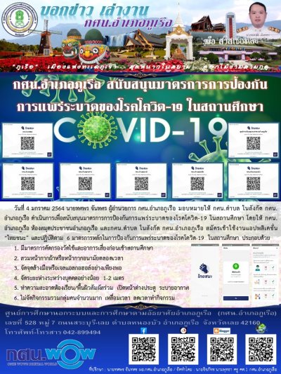 กศน.อำเภอภูเรือ สนับสนุนมาตรการการป้องกันการแพร่ระบาดของโรคโควิด-19 ในสถานศึกษา