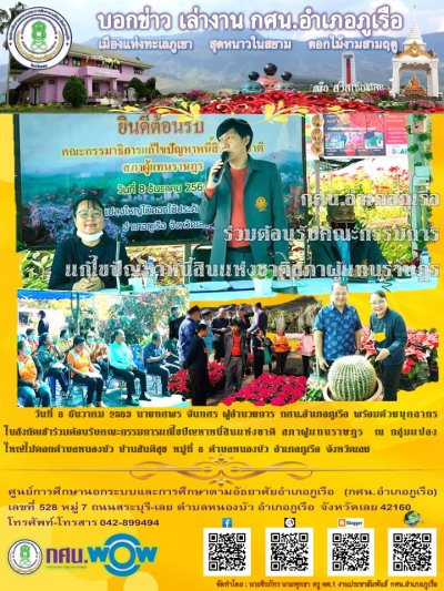 กศน.อำเภอภูเรือ ร่วมต้อนรับคณะกรรมการแก้ไขปัญหาหนี้สินแห่งชาติสภาผู้แทนราษฎร