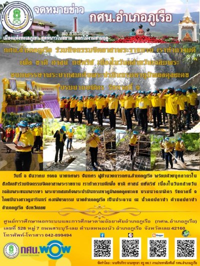 กศน.อำเภอภูเรือ ร่วมกิจกรรมจิตอาสาพระราชทาน เราทำความดีเพื่อ ชาติ ศาสน์ กษัตริย์ เนื่องในวันคล้ายวันเฉลิมพระชนมพรรษาพระบาทสมเด็จพระปรมินทรมหาภูมิพลอดุลยเดช บรมนาถบพิตร รัชกาลที่ 9