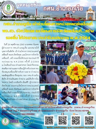 กศน.อำเภอภูเรือ เข้าร่วมโครงการหน่วยแพทย์เคลื่อนที่ พอ.สว. จังหวัดเลย และโครงการจังหวัดเคลื่อนที่...สร้างรอยยิ้ม ให้ประชาชน ประจำปีงบประมาณ พ.ศ.2564