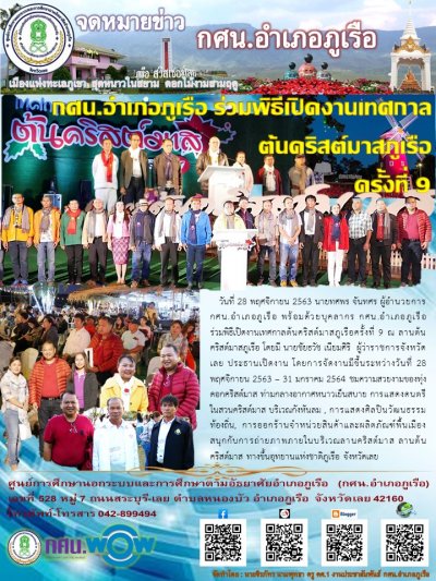 กศน.อำเภอภูเรือ ร่วมพิธีเปิดงานเทศกาลต้นคริสต์มาสภูเรือ ครั้งที่ 9