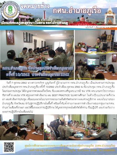 กศน.อำเภอภูเรือ ประชุมประจำเดือนบุคลากร กศน.อำเภอภูเรือ ครั้งที่ 10/2562 ประจำเดือน ตุลาคม 2562