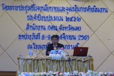 สำนักงาน กศน.จังหวัดเลย จัดโครงการประชุมชี้แจงนโยบายและจุดเน้นการดำเนินงาน ประจำปีงบประมาณ พ.ศ.2562 และมอบเข็ม ครูประวัติศาสตร์ชาติไทย ระหว่างวันที่ 8 - 9 พฤศจิกายน พ.ศ. 2561