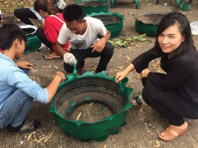 กศน.ต.ศรีสองรัก อ.เมืองเลย จัดโครงการเศรษฐกิจพอเพียงการทำกระถางปลูกต้นไม้จากยางรถยนต์ ประจำปี ๒๕๖๐