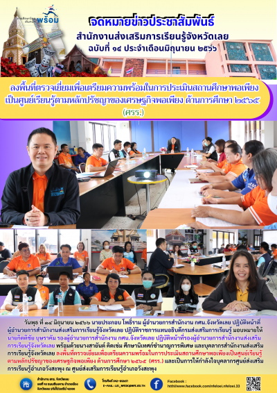 ลงพื้นที่ตรวจเยี่ยมเพื่อเตรียมความพร้อมในการประเมินสถานศึกษาพอเพียงเป็นศูนย์เรียนรู้ตามหลักปรัชญาของเศรษฐกิจพอเพียง ด้านการศึกษา ๒๕๖๕ (ศรร.)