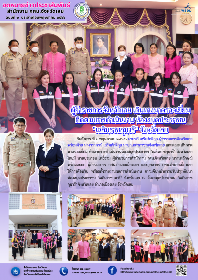 ผู้ว่าราชการจังหวัดเลย เดินทางมาตรวจเยี่ยม ติดตามการดำเนินงานห้องสมุดประชาชน "เฉลิมราชกุมารี" จังหวัดเลย