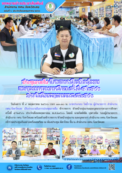 ประชุมภายใน ข้าราชการ หัวหน้ากลุ่มงานและบุคลากรทางการศึกษา ครั้งที่ ๕/๒๕๖๖ ประจำเดือนพฤษภาคม พ.ศ.๒๕๖๖