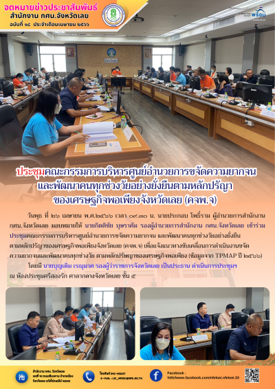 ประชุมคณะกรรมการบริหารศูนย์อำนวยการขจัดความยากจน และพัฒนาคนทุกช่วงวัยอย่างยั่งยืนตามหลักปรัญา ของเศรษฐกิจพอเพียงจังหวัดเลย (คจพ.จ)