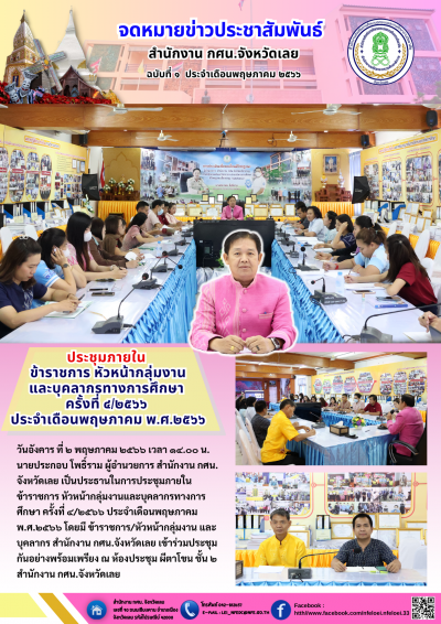 ประชุมภายใน ข้าราชการ หัวหน้ากลุ่มงานและบุคลากรทางการศึกษา ครั้งที่ ๔/๒๕๖๖ ประจำเดือนพฤษภาคม พ.ศ.๒๕๖๖