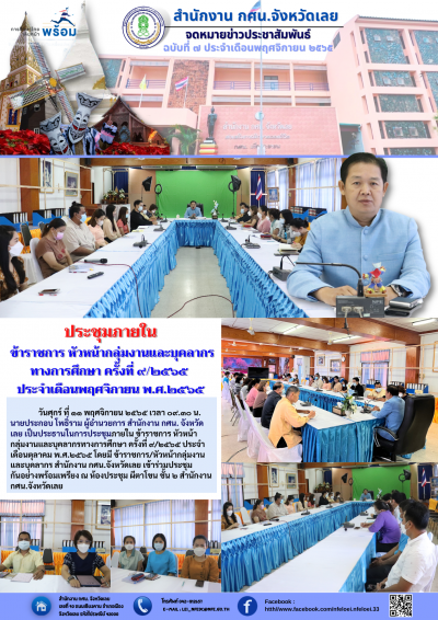 ประชุมภายใน ข้าราชการ หัวหน้ากลุ่มงานและบุคลากรทางการศึกษา ครั้งที่ ๙/๒๕๖๕ ประจำเดือนตุลาคม พ.ศ.๒๕๖๕