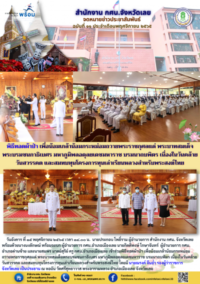 พิธีทอดผ้าป่า เพื่อน้อมเกล้าน้อมกระหม่อมถวายพระราชกุศลแด่ พระบาทสมเด็จพระบรมชนกาธิเบศร มหาภูมิพลอดุลยเดชมหาราช บรมนาถบพิตร เนื่องในวันคล้ายวันสวรรคต และสมทบทุนโครงการทุนเล่าเรียนหลวงสำหรับพระสงฆ์ไทย