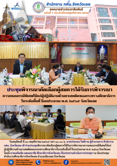 ประชุมพิจารณาคัดเลือกผู้สมควรได้รับการพิจารณาความชอบกรณีพิเศษให้แก่ผู้ปฏิบัติงานด้านยาเสพติดของกระทรวงศึกษาธิการในระดับพื้นที่ ปีงบประมาณ พ.ศ. ๒๕๖๕ จังหวัดเลย