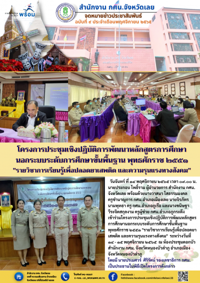 โครงการประชุมเชิงปฏิบัติการพัฒนาหลักสูตรการศึกษานอกระบบระดับการศึกษาขั้นพื้นฐาน พุทธศักราช ๒๕๕๑ "รายวิชาการเรียนรู้เพื่อปลอดยาเสพติด และความรุนแรงทางสังคม"